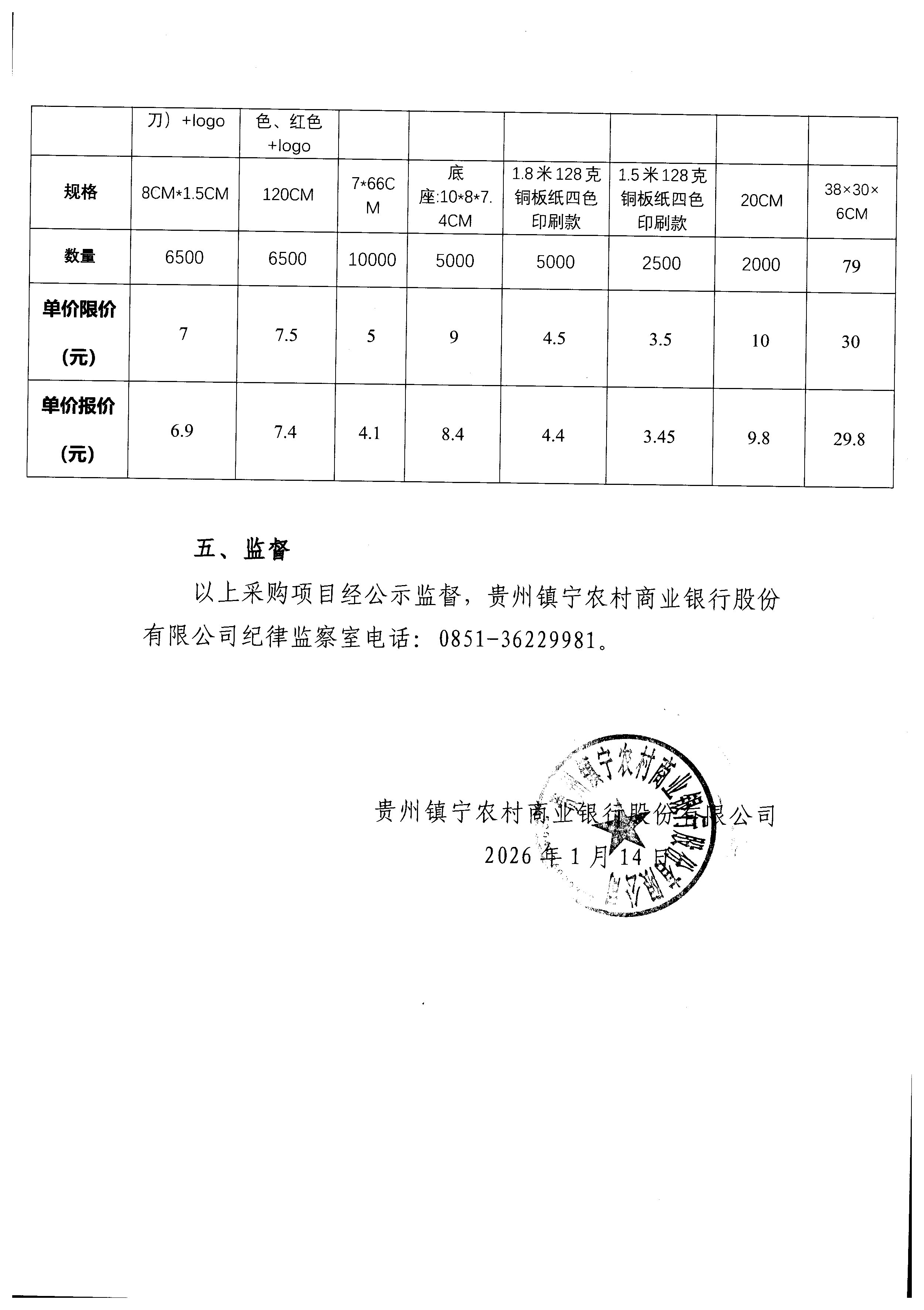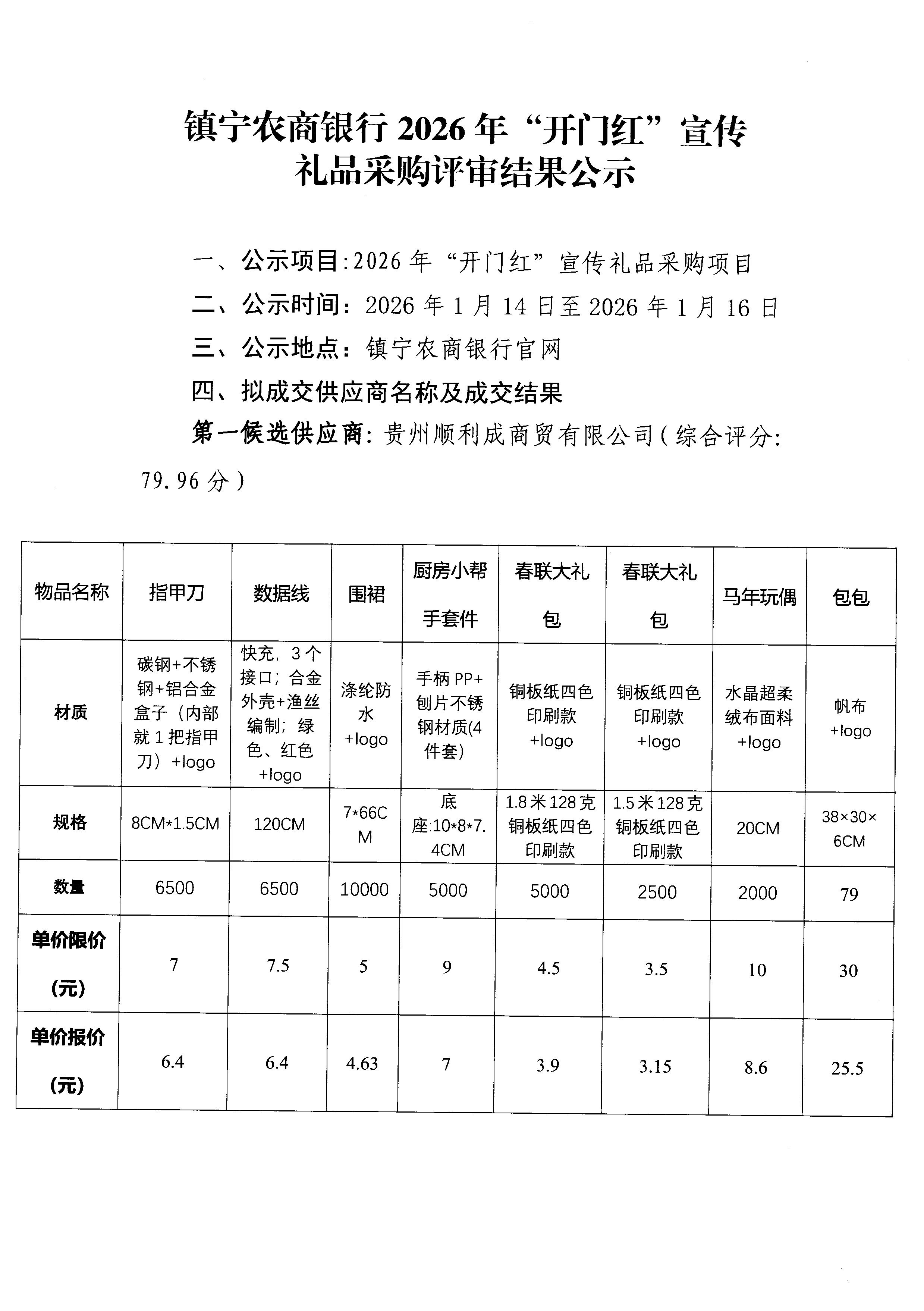 镇宁农商银行2026年“开门红”宣传 礼品采购评审结果公示
