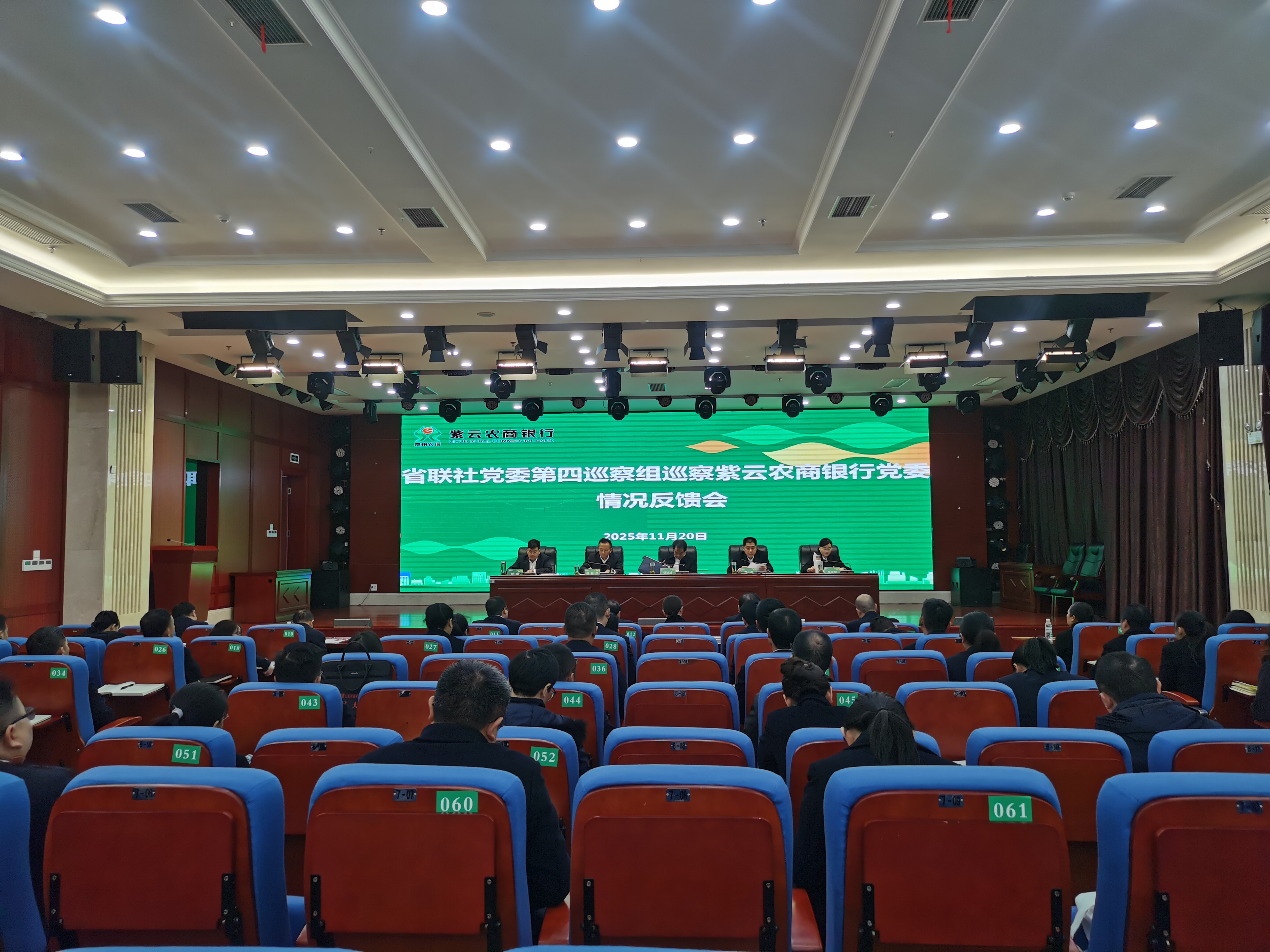 根据省联社党委巡察工作统一部署,2025年11月20日,省联社党委第四巡察组向紫云农商银行党委反馈巡察情况。巡察组副组长李凤琴传达习近平总书记关于巡视工作的重要论述;传达省联社党委书记、理事长、巡察工作领导小组组长杨松同志在省联社专题党委会上听取省联社党委2025年巡察工作情况汇报时的讲话精神。省联社党委巡察工作领导小组成员、党委宣传部部长谭勇出席反馈会并对抓好巡察整改工作作要求,省联社党委第四巡察组组长谌洪波向紫云农商银行党委领导班子反馈巡察意见。安顺审计中心党委书记曾毅劲就履行巡察整改监督责任作表态,并对做好巡察整改工作提要求,紫云农商银行党委书记甘虹主持反馈会议并作表态发言。会前,省联社党委第四巡察组向甘虹同志单独反馈了巡察情况,提出巡察整改意见。