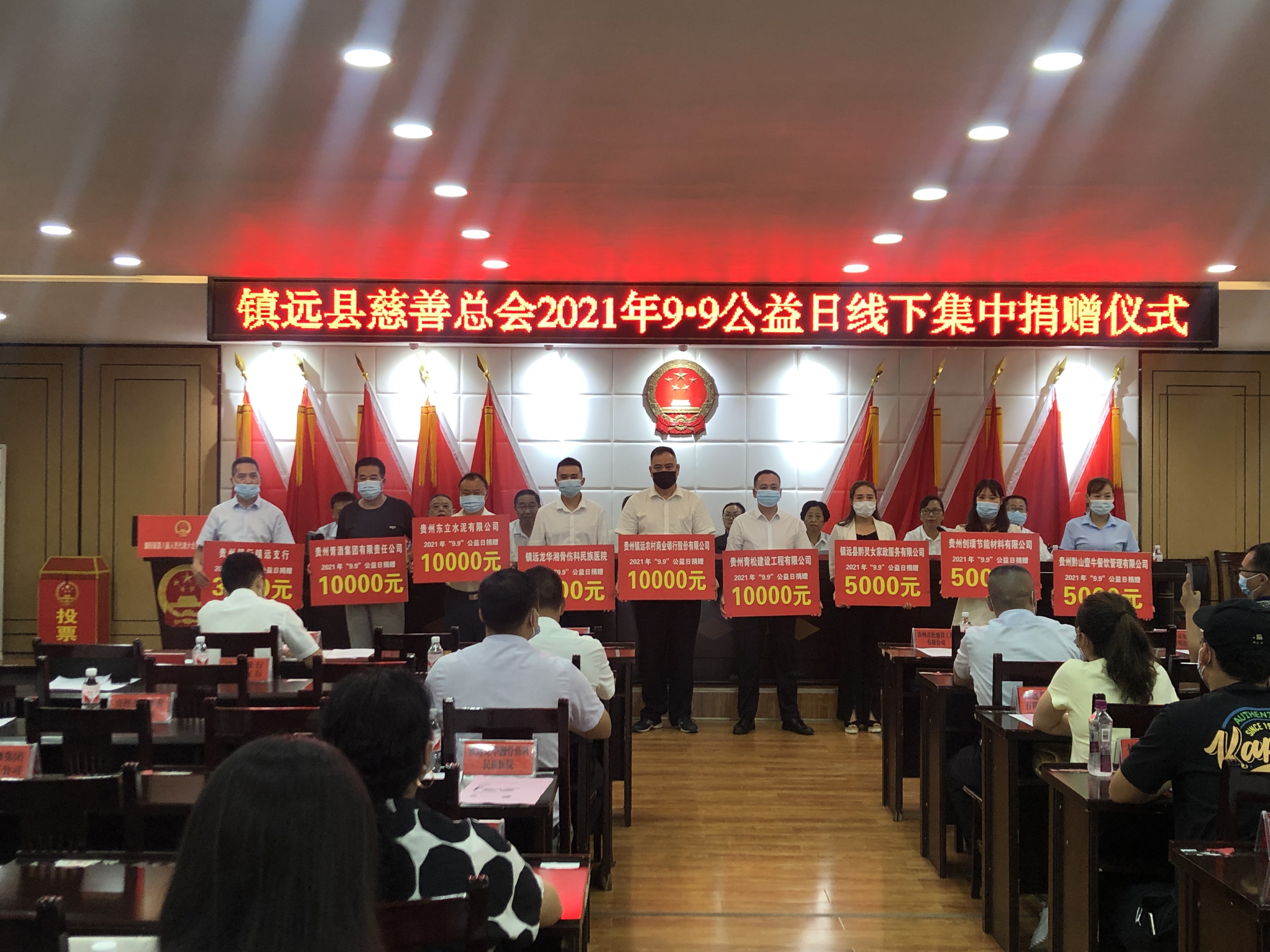 9月9日上午,镇远县慈善总会2021年9.9公益日线下集中捐赠仪式在舞阳镇人民政府五楼会议室举行,仪式由县民政局局长、县慈善总会常务副会长伍丹主持,活动仪式上宣读了《爱洒舞水善行镇远网络募捐倡议书》,县慈善总会会长朱鸣,县人民政府副县长粟静出席活动并讲话。镇远农商银行党委副书记、行长杨俊松与多家赞助企业代表一同参加线下集中捐赠仪式,并现场代表镇远农商银行捐款壹万元人民币支持“9.9公益”项目,受到社会各界的广泛赞誉。