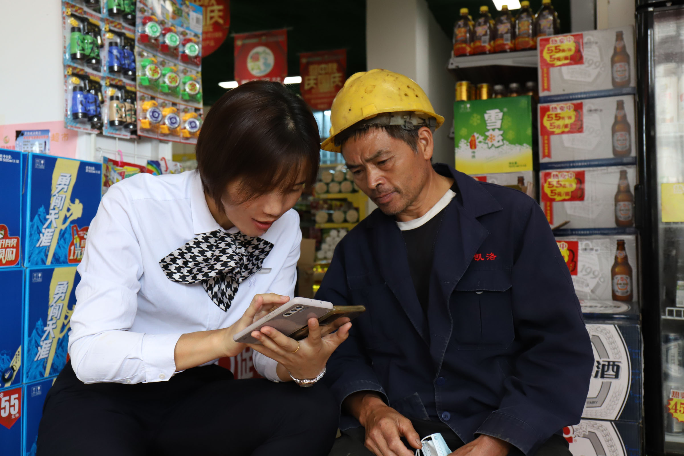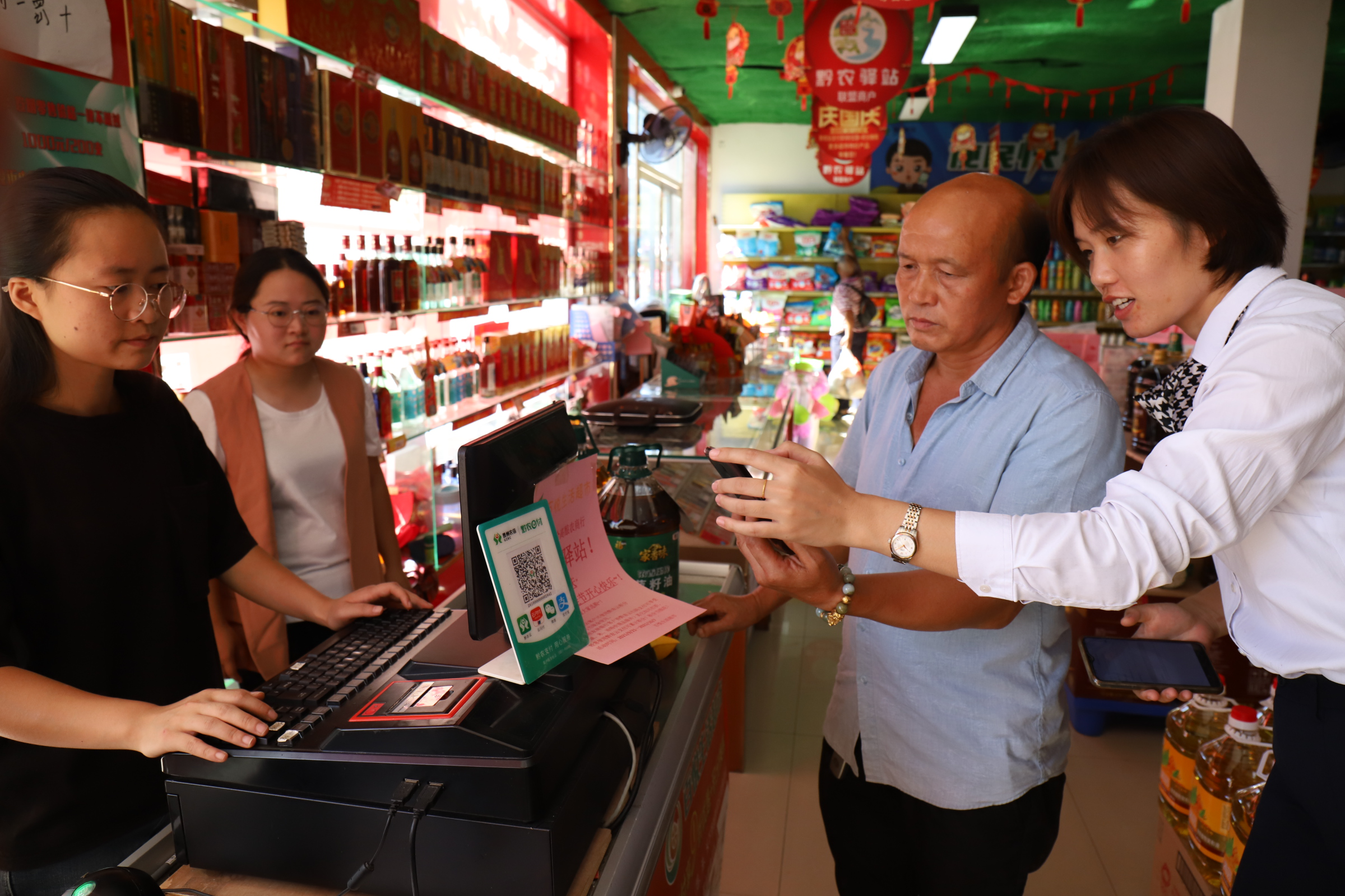 (图为:指导客户扫码支付)