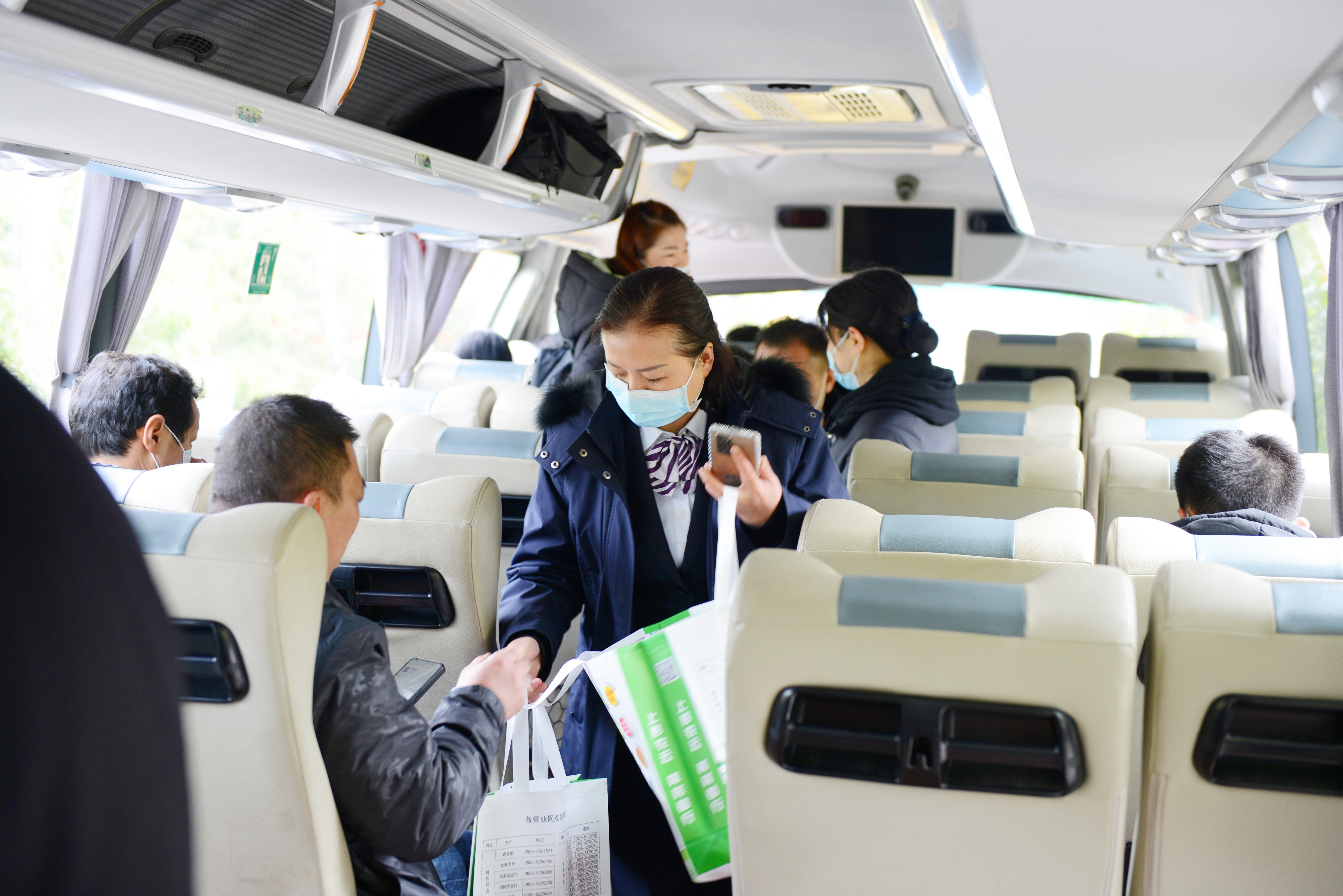 “各位老乡,我也在广东,这是我的名片,请大家添加我们的服务群,在工作和生活中遇到的任何金融、就业等问题都可以联系我们……”剑河农商银行派驻深圳农民工金融服务中心人员赵四海,在返岗直通车上一边发放“爱心大礼包”,一边向返岗务工人员讲解金融政策。