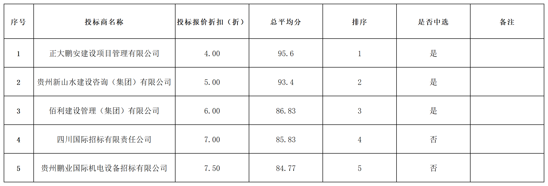 贵州黔西农村商业银行股份有限公司招标代理机构入围式采购(第二次)(项目编号QXNS20251101)项目,公告后,共收到五家供应商响应文件,本着公开、公正、公平、诚实信用原则,现就本次采购评审结果公示如下: