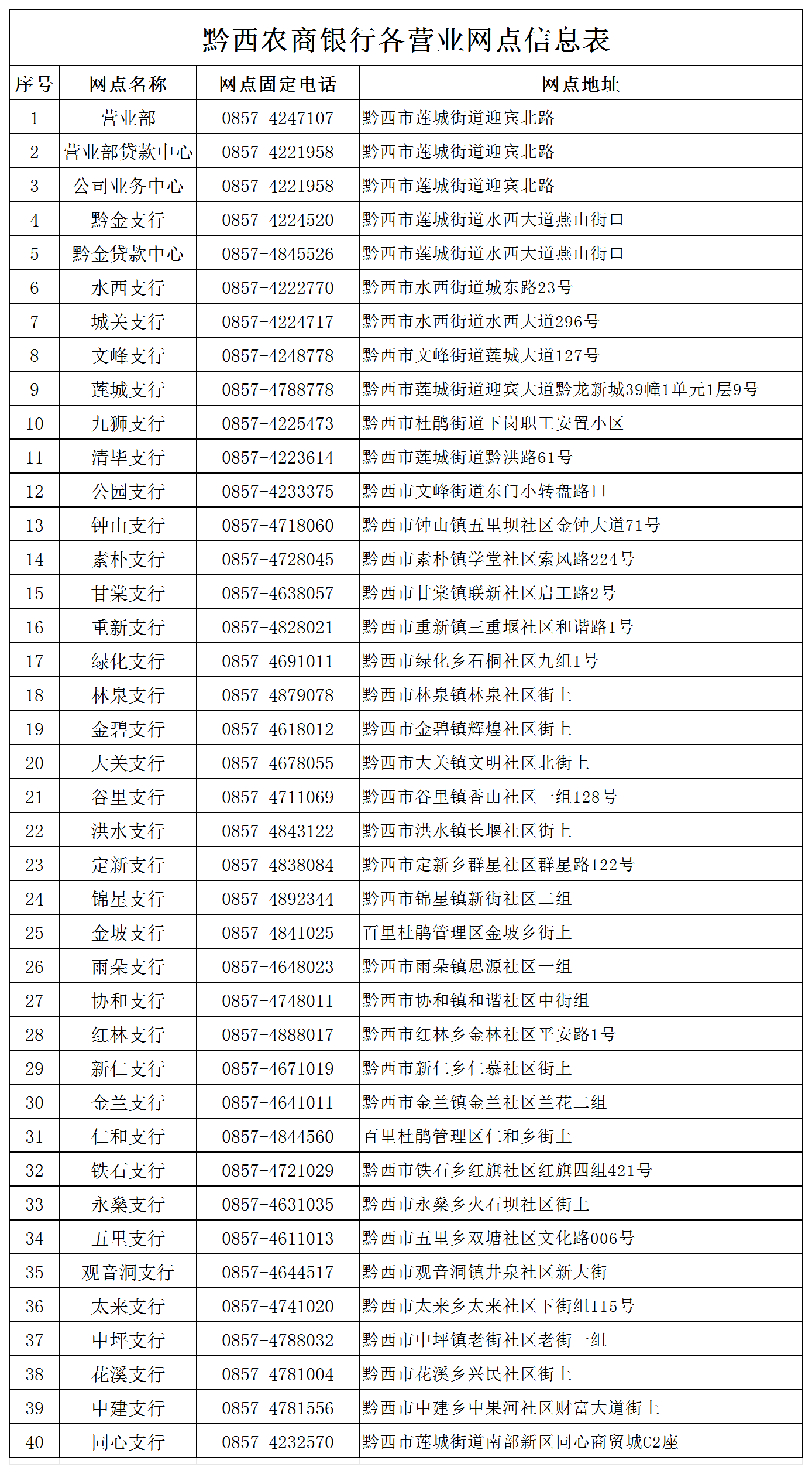 2.黔西农商银行各营业网点信息表