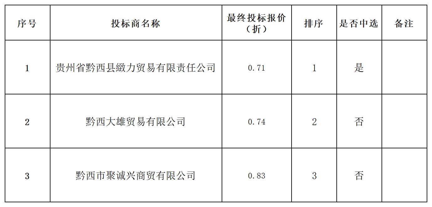 贵州黔西农村商业银行股份有限公司办公设备采购项目(项目编号QXNS20260102)项目公告后,共收到三家供应商响应文件,本着公开、公正、公平、诚实信用原则,现就本次采购评审结果公示如下: