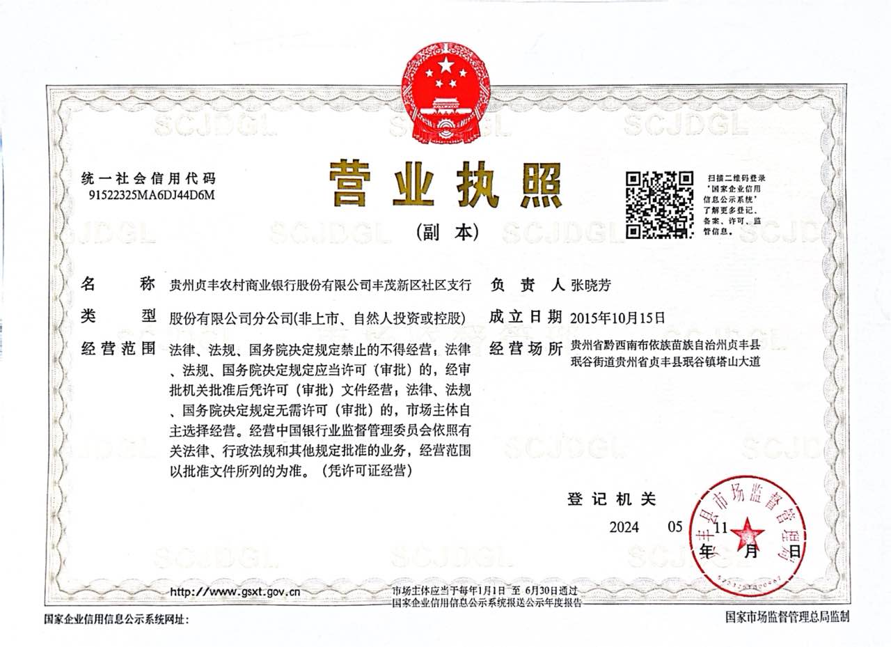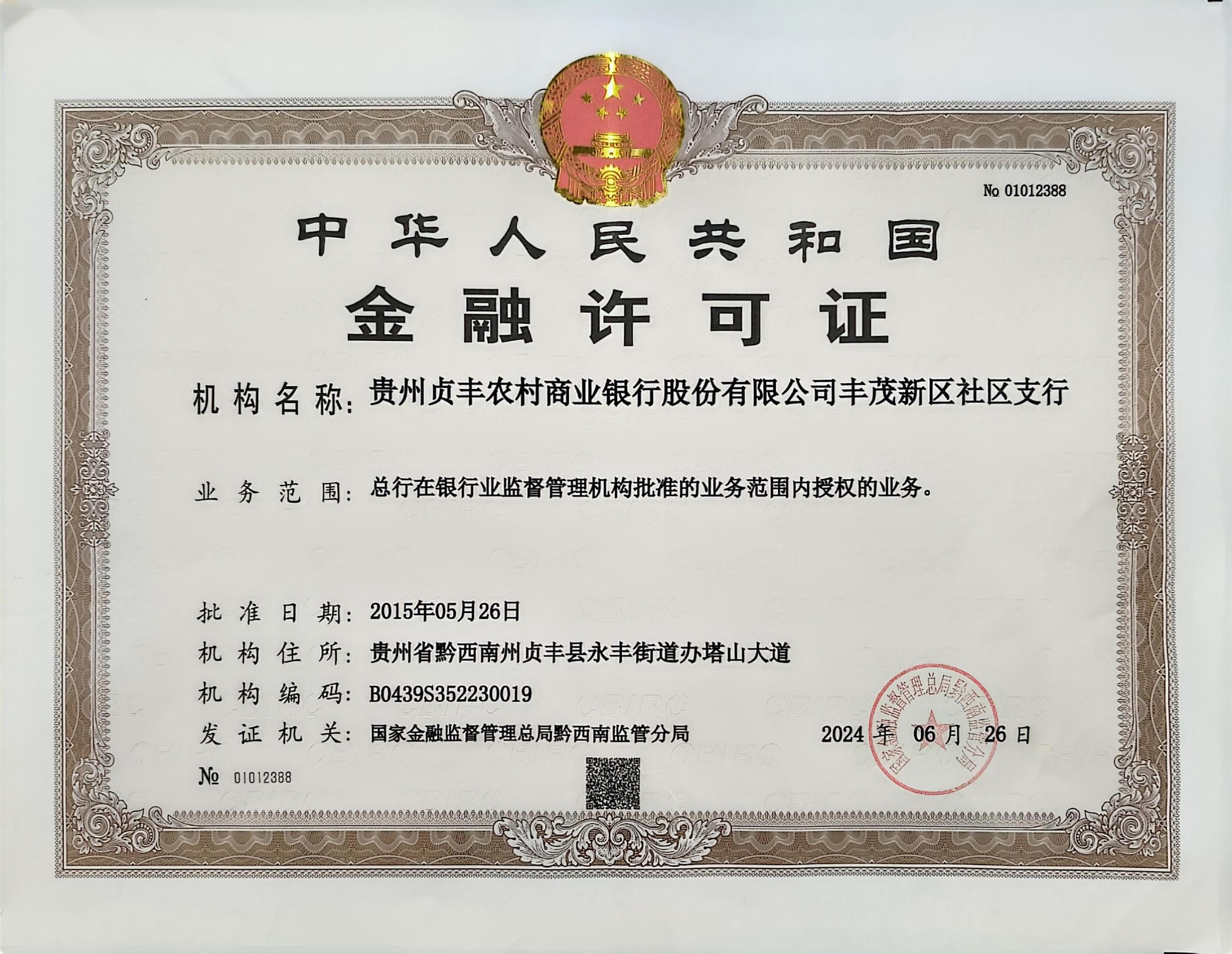贵州贞丰农村商业银行股份有限公司丰茂新区社区支行