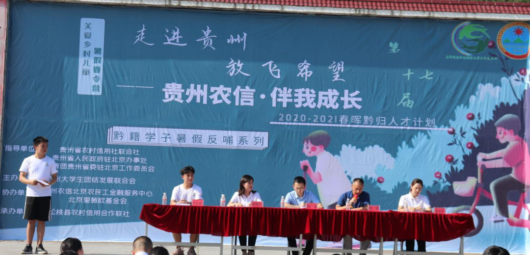 为充分发挥贵州农信驻外农民工金融服务中心联动协调能力,做好农村留守儿童关爱保护服务工作,为广大农村留守儿童健康成长创造更好的学习环境,近日,“贵州农信·伴我成长”——关爱农村留守儿童系列主题夏令营大型公益实践活动在北京农民工金融服务中心协办下,分别在遵义市道真县花池小学、黔东南州镇远县凯言小学和松桃县甘龙中学开启。