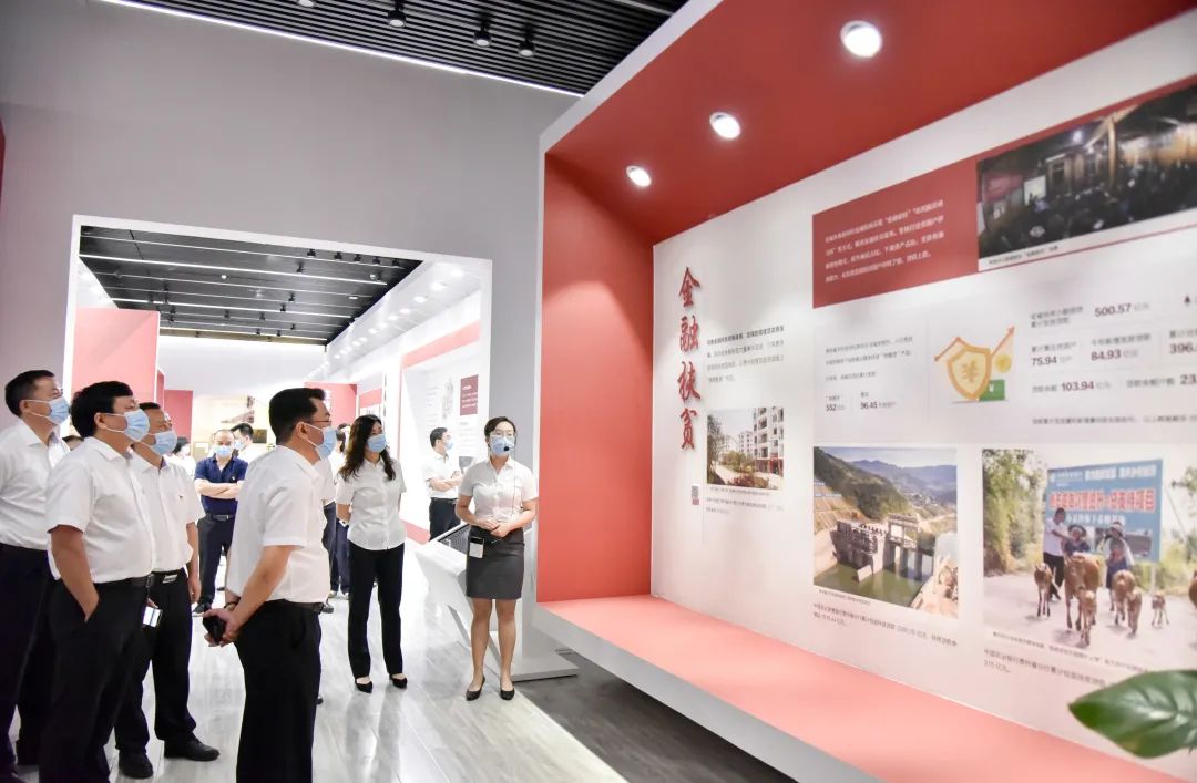 在“中国减贫奇迹的精彩篇章--贵州脱贫攻坚成就展”展馆,讲解员带领大家依次参观了“序厅”“回首”“谋划”“开拓”“风采”“展望”六个篇章,重温了贵州脱贫攻坚的艰辛历程、重大成就和宝贵经验,深刻感受了无数共产党人为打赢脱贫攻坚战所作的牺牲与贡献。在金融扶贫展区,重点展示了贵州农信等金融机构的扶贫成效,在“金融夜校”“特惠贷”发放数据等图片前,大家纷纷驻足关注,深感光荣与自豪。