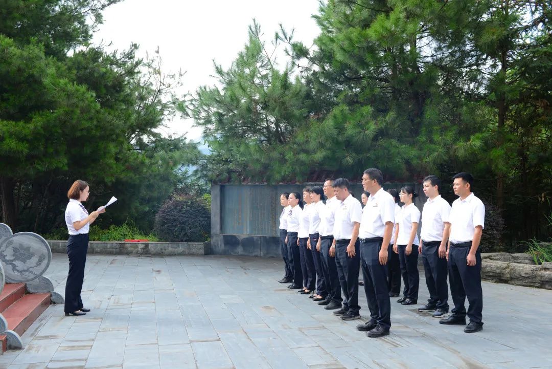 9月18日上午,剑河农商银行党委组织机关部室全体党员职工开展“勿忘国耻吾辈自强”纪念“九一八”事变90周年主题活动。在革命烈士纪念碑前,深情缅怀革命先烈,向革命烈士敬献鲜花,一起学习“九一八”事变爆发的历史并重温入党誓词,汲取奋进力量。随后,该行机关部室全体人员集体跟唱革命歌曲《松花江上》,观看《国家记忆》之《铭记九一八》纪录片,并由贵州农信2020年新时代标兵莫春艳同志向大家介绍了她在工作中充分发挥党员先锋模范作用,冲锋在前,爱岗敬业,无私奉献的事迹。剑河农商银行庄严肃穆的“仪式感”教育和“沉浸式”精神洗礼,激发了党员干部职工在铭记党的历史中奋进新征程的昂扬斗志,有效激励了全体职工全方位做好金融服务工作,在全面助推乡村振兴中贡献智慧和力量,创造无愧于时代、无愧于先辈的业绩。