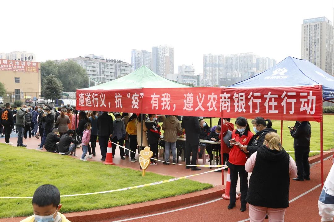 志愿者贴心服务。遵义农商银行志愿者纷纷来到核酸监测点,主动维护现场秩序,协助登记信息,帮助老年群众使用手机开展核酸检测。
