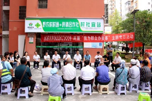 凯里市白午街道移民安置区内都是新建小区,基础配套设施尚未完善,为有效填补该地区金融服务空白,凯里农商银行积极与街道办事处、社区两委、供销社等单位对接,开展“三社联建”,并于今年9月实现“黔农村村通·村社宜站”正式运营。站点融合了党建政务、普惠金融、人才劳务、供销物流、快递邮件、购物消费、爱心服务等功能并设有助农取款设备满足居民小额取现、转账、查询、缴费等基础金融需求,建成了以党建为引领、以金融为核心、以爱心服务为延伸的综合型服务场景。