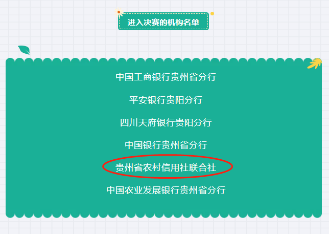 今日,贵州省金融学会公布绿色金融知识竞赛初赛成绩,贵州农信进入决赛。