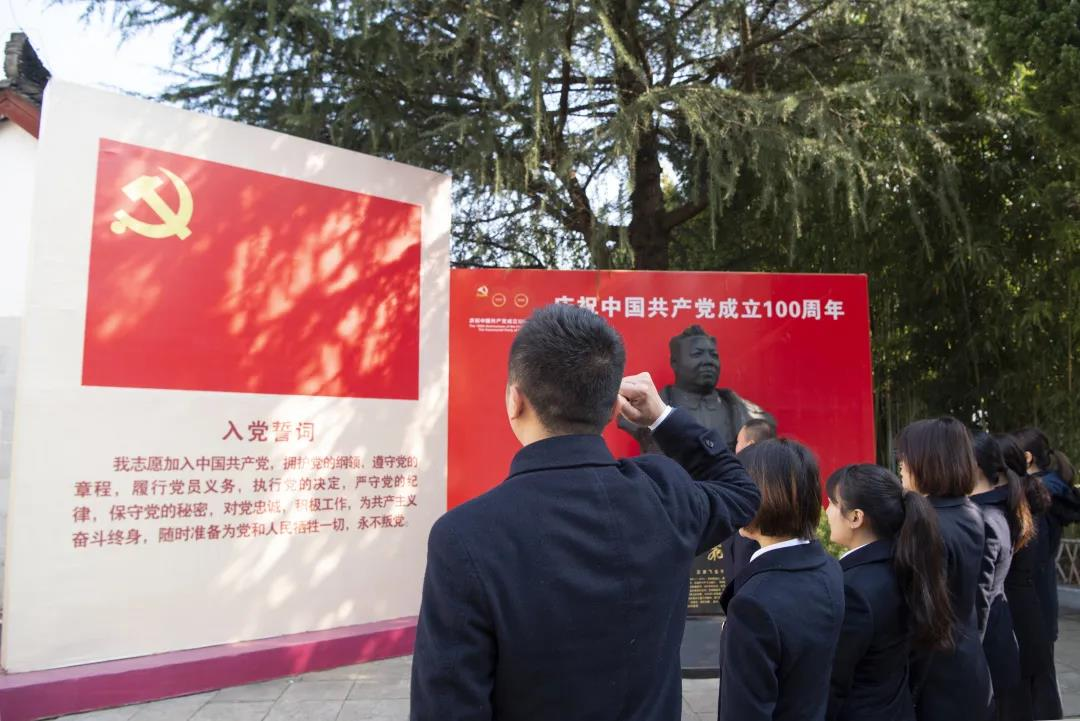 11月25日上午,参加人员一行首先参观了爱国主义教育基地王若飞故居,跟着讲解员重温了老一辈无产阶级革命家王若飞同志的成长历程及参与重大革命事迹。全体人员集体瞻仰烈士塑像并敬献鲜花,在王若飞同志塑像前重温了入党誓词。