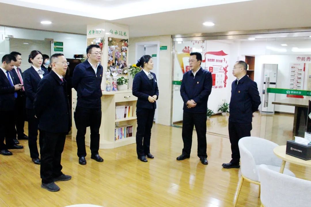 马林波一行首先到凯里农商银行城西党支部调研指导,认真查看网点建设及党支部建设情况,并组织召开座谈会。在认真听取汇报后,马林波对黔东南农信、凯里农商行以及城西党支部在经营发展、风险防化、党的建设等方面的工作给予了充分肯定并提出五点工作要求:一是全力冲刺,确保高质量完成全年目标任务。要充分利用好今年最后20余天时间,紧盯年初目标任务和重点工作,对标对表、查缺补漏、攻坚克难、全面冲刺,确保今年各项工作收好官。要提前思考、认真谋划好明年“开门红”行动方案,抓早、抓准、抓实各项重点工作,确保明年开好局、起好步。二是夯基固本,推进“五做”往实里走深里走。要持之以恒在做强服务、做实基础、做优结构、做好管理、做活机制上发力,努力实现三年打基础,两年上台阶的目标。要进一步在黔农村村通运营和管理升级上下功夫,探索搭建长效利益联结机制,确保转型升级数量和质量双达标。要以村村通升级打造为契机,持续打牢信用工程底板、做实外出农民工服务、社保卡激活、惠农补贴代理等工作,努力夯实高质量发展根基。三是标本兼治,加强金融风险防范化解。要进一步加大风险处置力度,有力有序化解存量风险,努力防范新增风险。要坚持短期治标,长期治本,穷尽自身处置能力,充分挖掘内部潜力,积极借助外力,集中发力抓好重点机构和重点领域风险化解处置工作,确保守牢风险底线。四是加强党建,凝聚推动高质量发展合力。要扎实开展党史学习教育,努力推动“我为群众办实事”实践活动,切实提升广大客户满意度和员工的幸福感。要认真学习宣传贯彻党的十九届六中全会精神和省委十二届十次全会精神,切实把全会精神转化为做好各项工作的实际行动。要推动党建和业务深度融合,实现联动推进,良性互促。要加强支部建设,把基层党组织建设成为坚强战斗堡垒。要坚持党管干部、党管人才原则,加强人才队伍建设,努力推动人才工作上新台阶。五是加强统筹,处理好发展与安全关系。要始终绷紧安全生产这根弦,履行好防范化解重大安全风险的责任,正确处理好安全与发展的关系,扎实做好安全生产工作。要压实案件防控责任,落实案件防控要求,严防案件发生。要严格落实疫情防控要求,科学开展疫情防控,常态化做好疫情防控各项工作,切实保障干部员工健康安全。