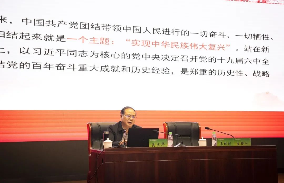 报告会上,吴大华从深刻认识和把握党的十九届六中全会的重大深远意义、丰富内涵和核心要义;深入学习领会省委十二届十次全会精神,把“两个确立”转化为“两个维护”的政治自觉、思想自觉、行动自觉;切实把党的十九届六中全会和省委十二届十次全会精神落实到各项工作之中,走好新时代贵州赶考之路三个方面,全面、系统、深入解读了党的十九届六中全会和省委十二届十次全会精神。报告运用丰富史实、生动案例、凝练语言进行讲解,既有理论高度和思想深度,又有内容广度和历史厚度,对贵州农信学习贯彻全会精神、深入开展好党史学习教育具有重要的指导意义。