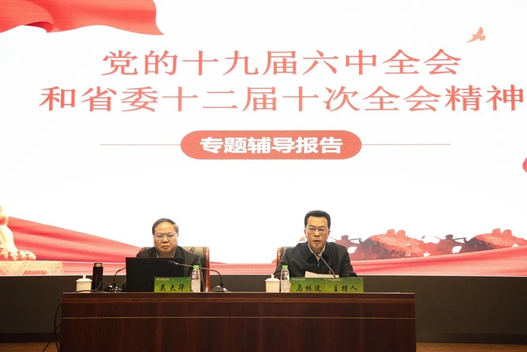12月10日,贵州农信举行党的十九届六中全会和省委十二届十次全会精神专题辅导报告会,邀请省社会科学院党委书记、省委宣讲团成员吴大华作专题辅导报告。省联社党委书记、理事长马林波主持报告会。