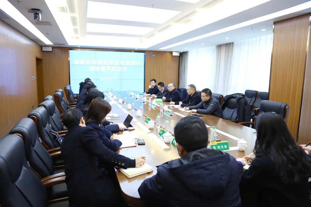 图为:胡凯听取兴义农商银行工作汇报