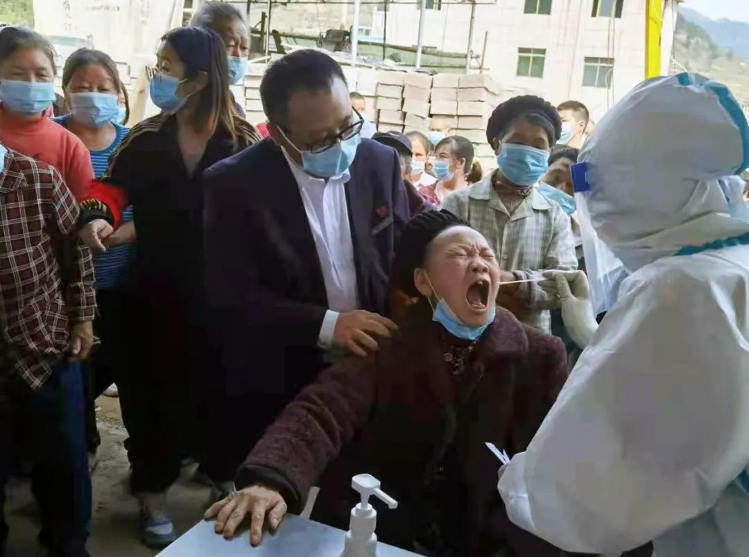 务川农商银行志愿者(下称“志愿者”)帮助群众注册核酸检测程序