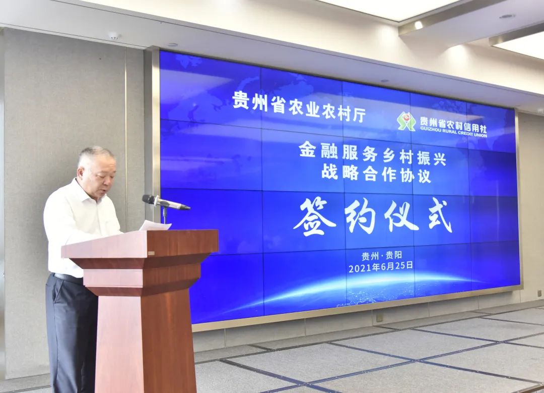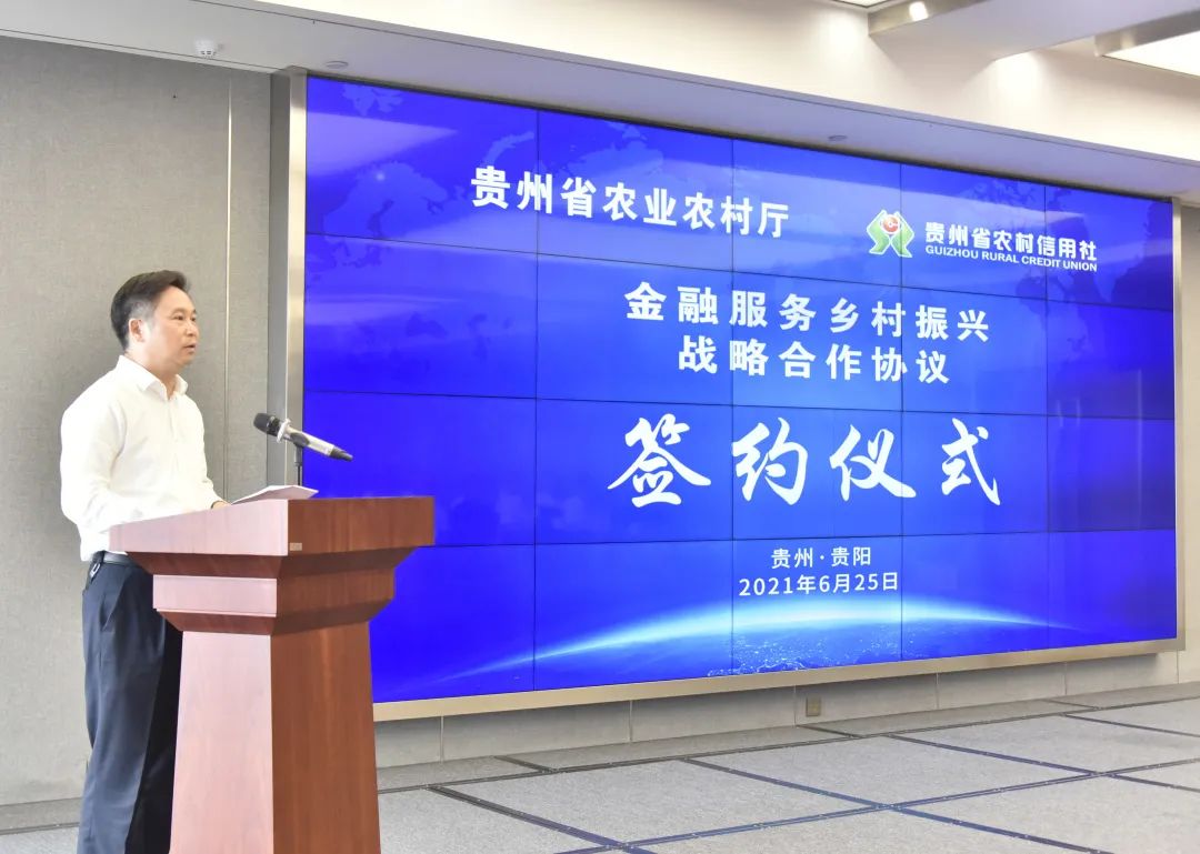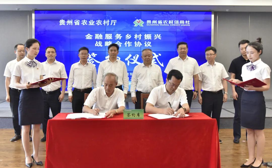 6月25日下午,贵州省农村信用社联合社与贵州省农业农村厅金融服务乡村振兴战略合作协议签约仪式在省联社科技大楼举行。省农业农村厅党组书记、厅长张集智、省农业农村厅党组副书记、副厅长(正厅长级)胡继承,省联社党委书记、理事长蔡湘、省联社党委副书记、副理事长、主任马林波出席签约仪式。省农业农村厅、省联社相关处室负责人参加签约仪式。