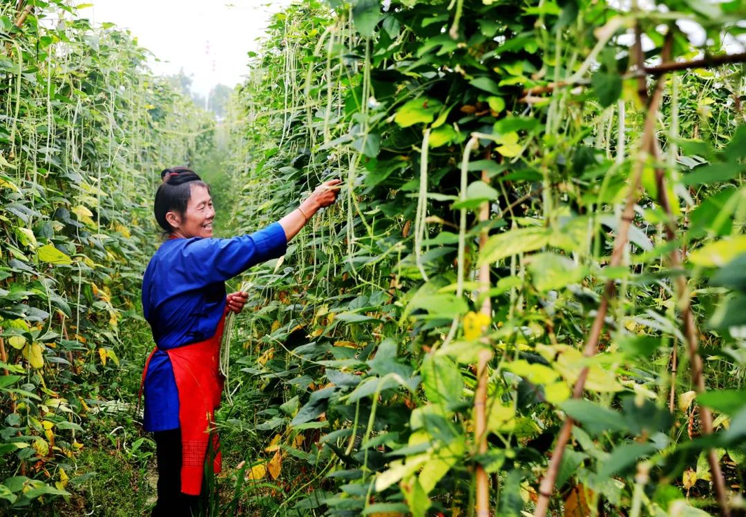 6月的清晨,榕江县车江大坝笼罩着一层薄薄的白雾,温暖的阳光普照大地。迎着凉爽的微风,一颗颗饱满的豇豆长势喜人,随风摆动。榕江县阳光蔬菜种植农民专业合作社监事长石针和社员们在蔬菜基地里欢快地穿梭着,她们要趁烈日到来前,采摘最新鲜的豇豆。