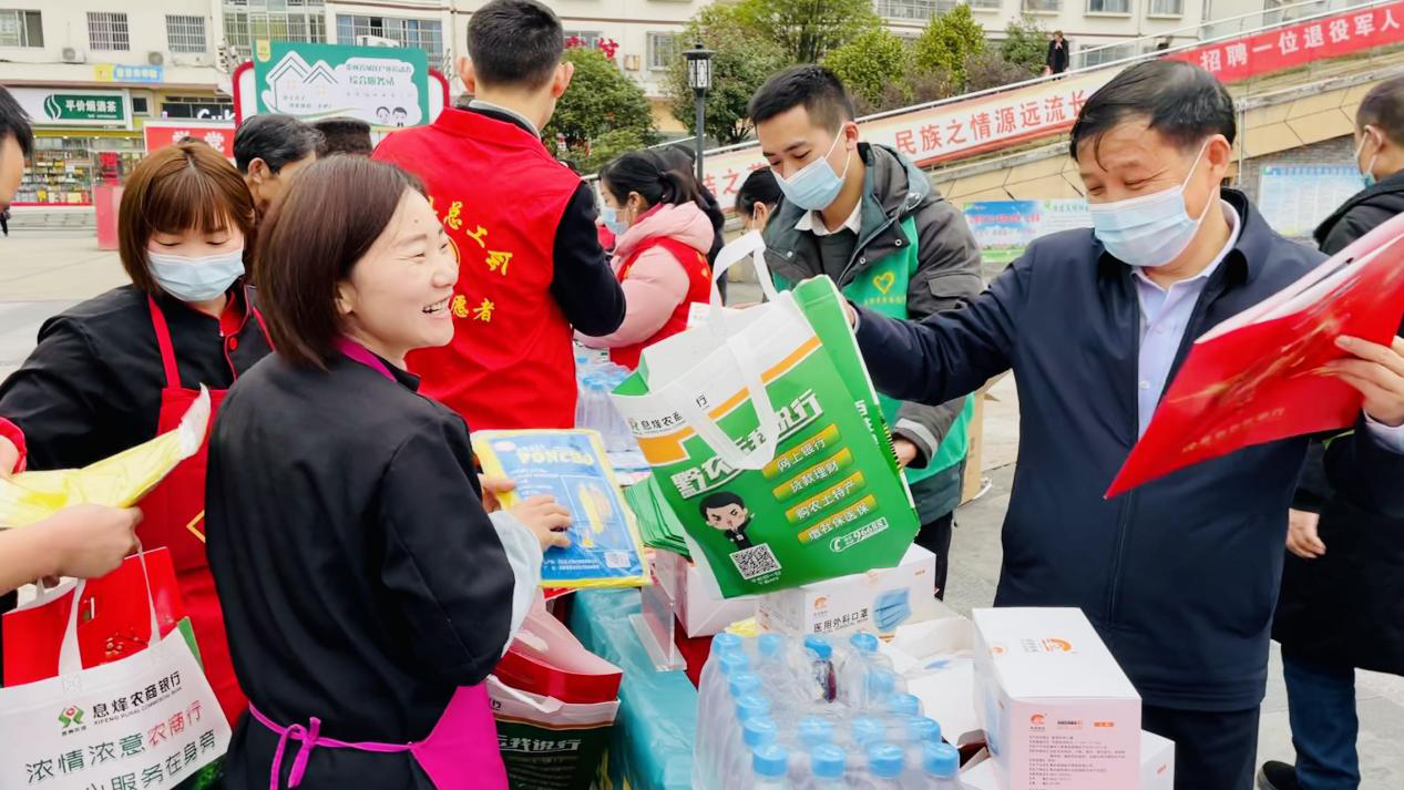 二送祝福。息烽农商人亲手送上春联和一句温馨的祝福,欢迎农民工朋友回家过年,送上家乡人的温暖和一片心意,让农民工朋友感受了回家过年的喜庆氛围。