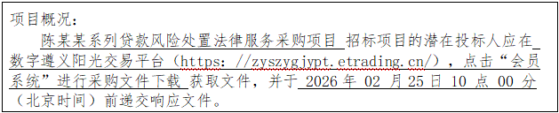 贵州遵义红花岗农村商业银行股份有限公司陈某某系列贷款风险处置法律服务采购公告