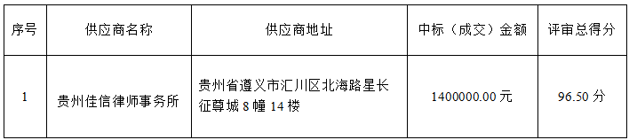 贵州遵义红花岗农村商业银行股份有限公司关于陈某某系列贷款风险处置法律服务采购项目(二次)中标(成交)结果的公告