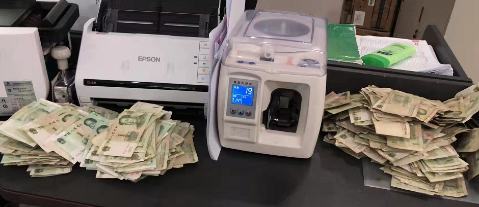 由于钞币面额较小,存在拼接、残损等情况,工作人员还需对清点不畅的钞币进行手工识别。
