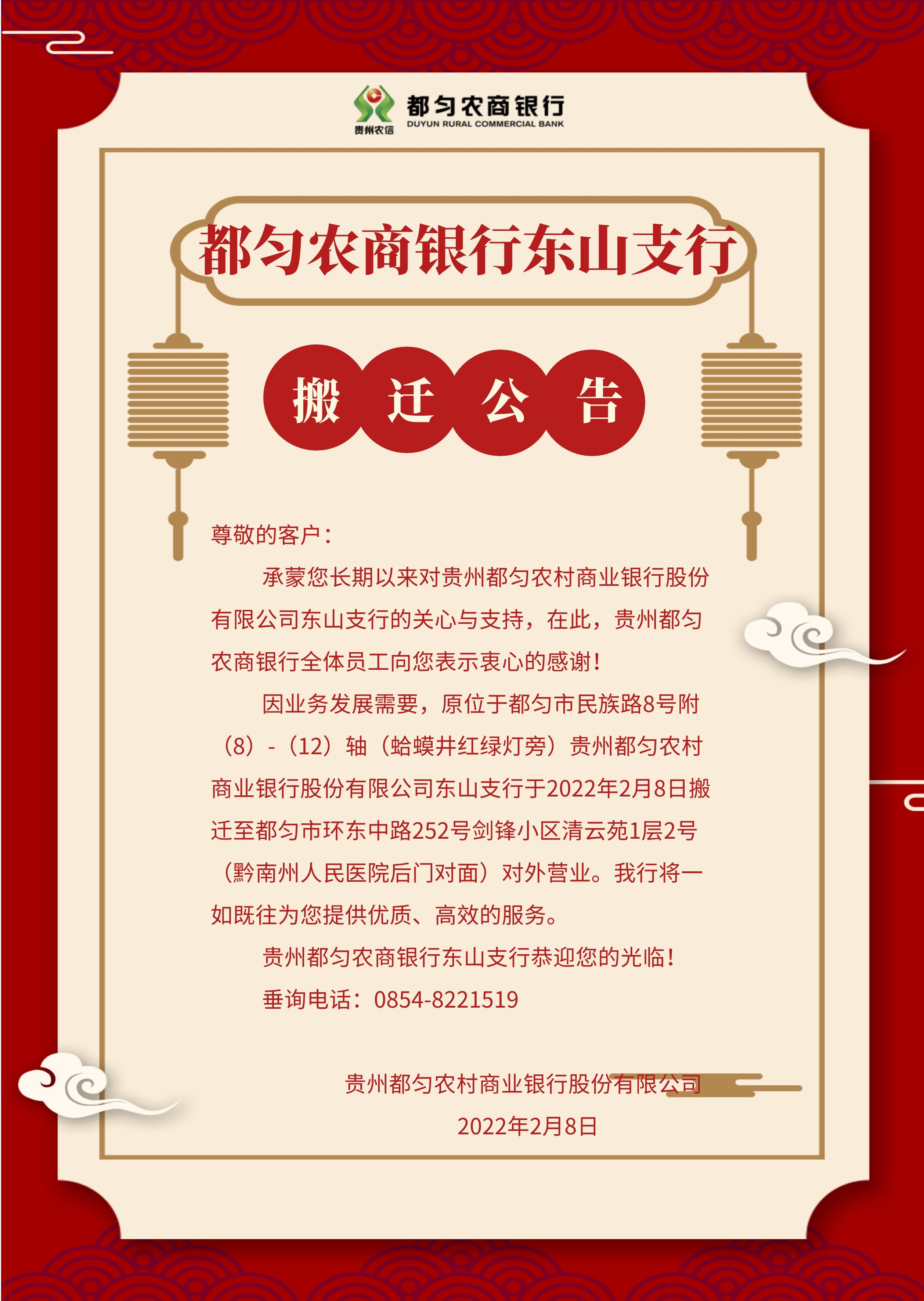 都匀农商银行东山支行搬迁公告