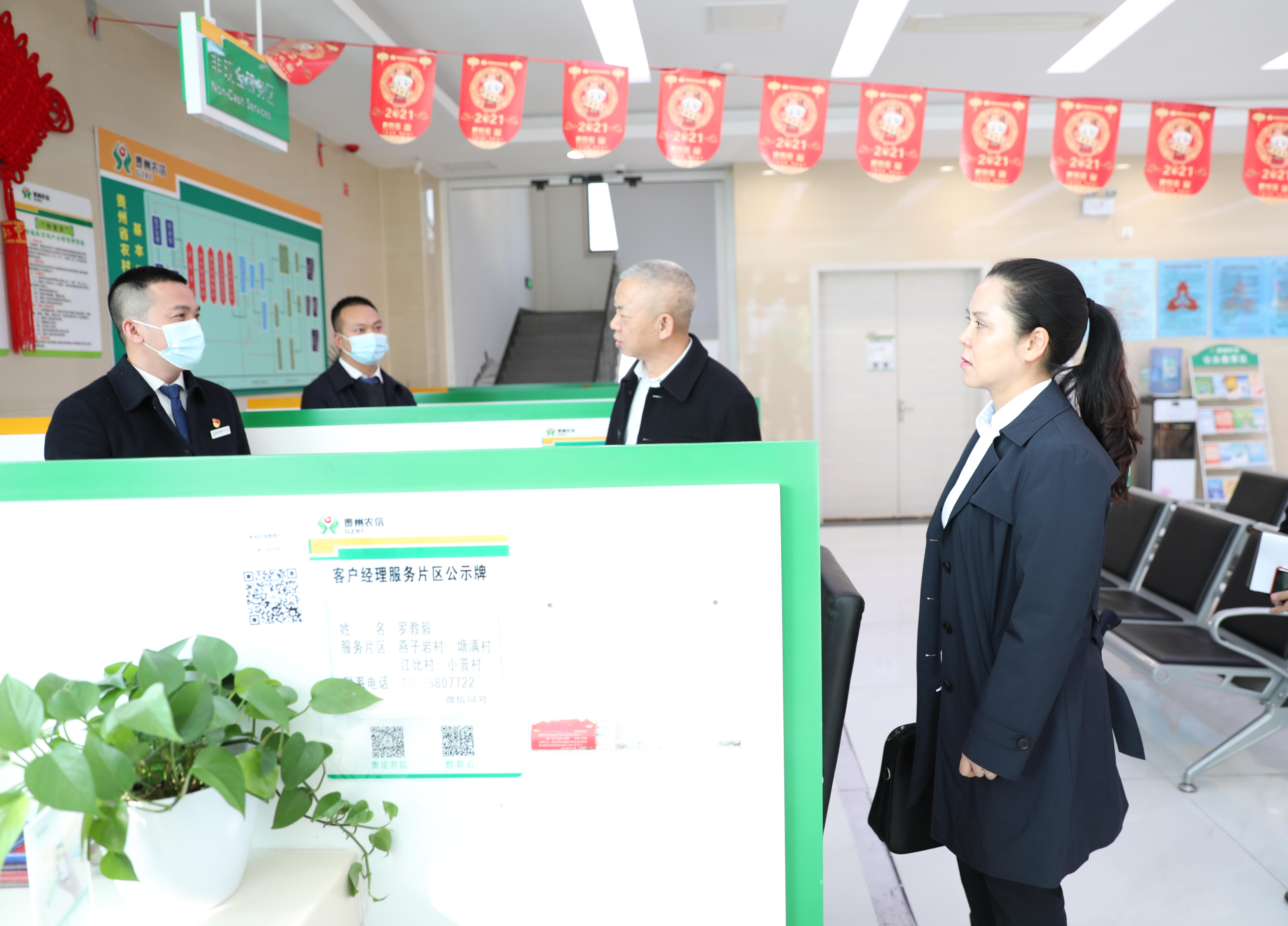 图为:卢波(右二)到云雾支行调研