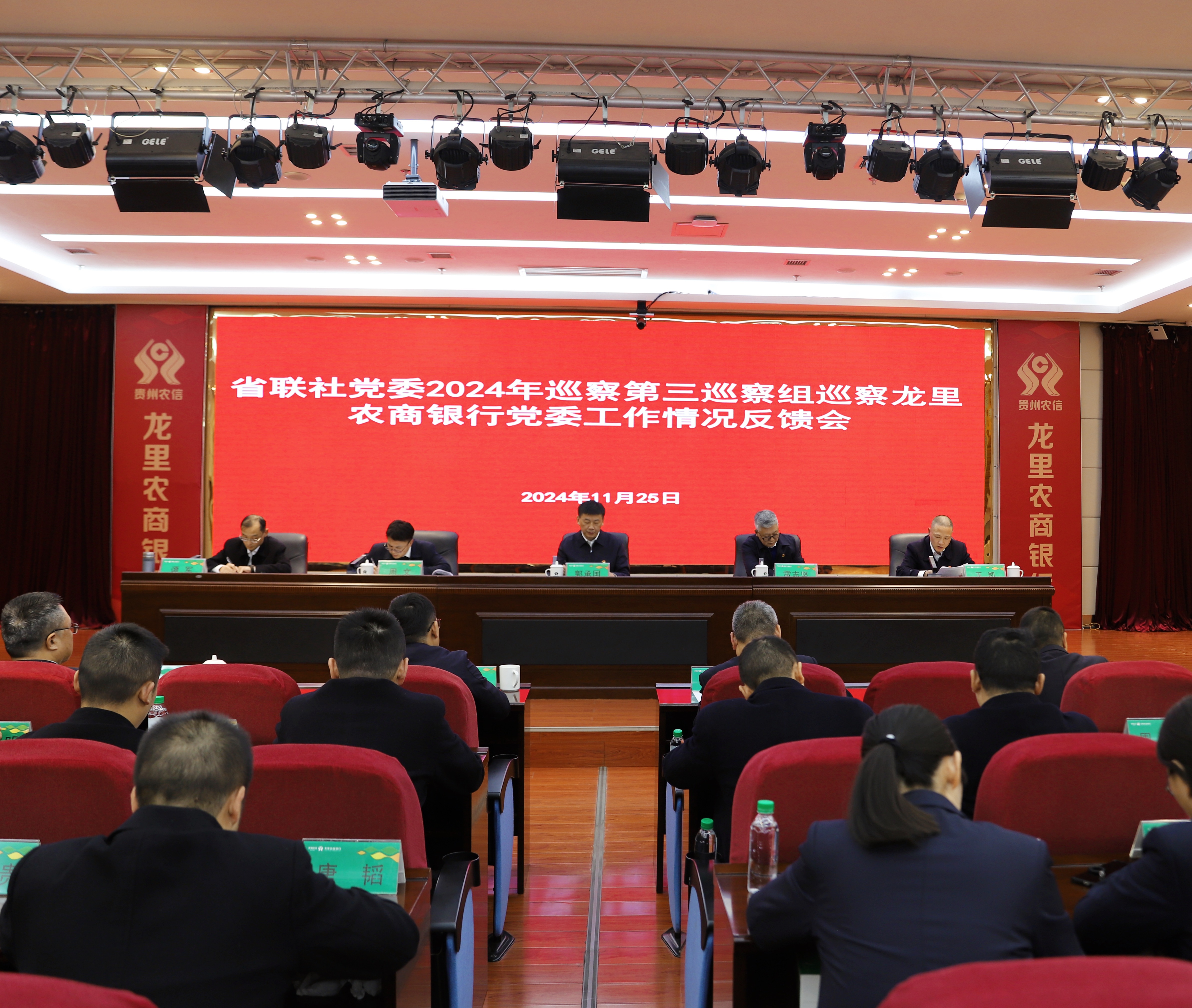 根据省联社党委巡察工作统一部署,2024年11月25日,省联社党委第三巡察组向龙里农商银行党委反馈巡察情况。省联社党委第三巡察组副组长王凯传达省联社党委书记、理事长、巡察工作领导小组组长杨松在省联社党委会上听取巡察工作汇报时的讲话精神。省联社党委巡察工作领导小组成员、省联社党委巡察办主任郭承国出席反馈会并对抓好巡察整改工作作要求,省联社党委第三巡察组组长雷志坚向龙里农商银行党委领导班子反馈巡察意见。黔南审计中心党委委员、副主任周文就履行巡察整改监督责任作表态,并对做好巡察整改工作提要求,龙里农商银行党委主要负责人谭军主持反馈会议并作表态发言。会前,省联社党委第三巡察组向谭军同志单独反馈了巡察情况,提出巡察整改意见。