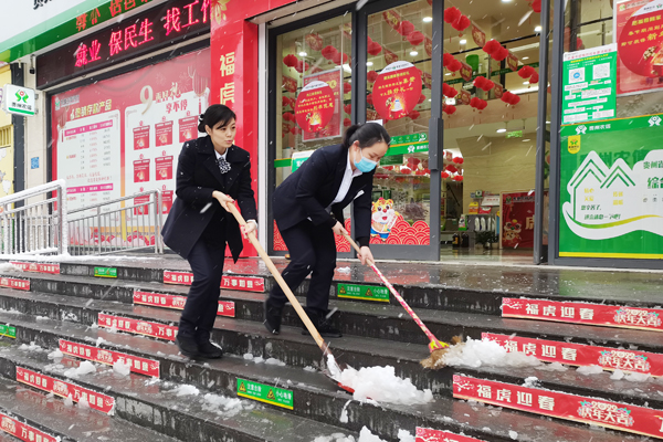 清扫积雪迎客户:凯里农商银行城西支行积极落实防寒防冻措施