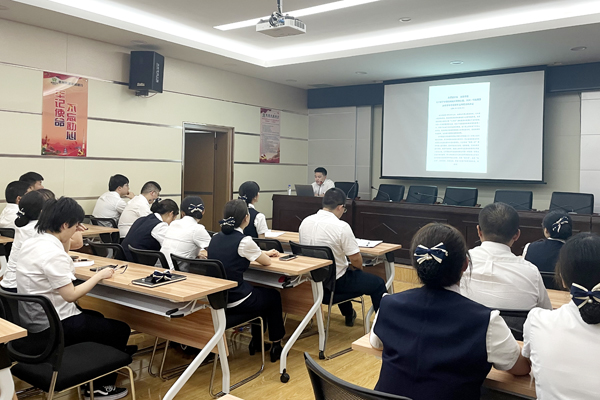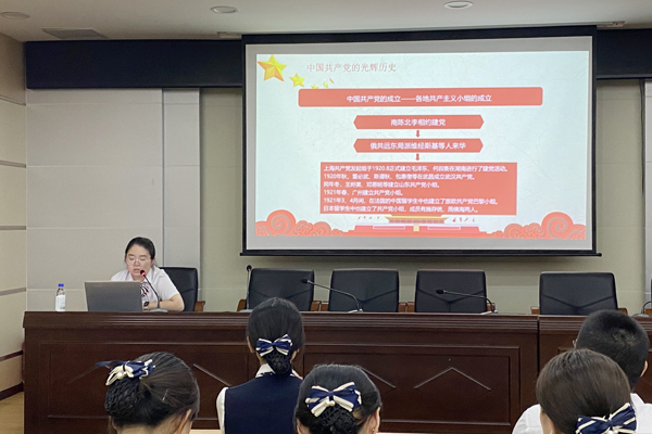 活动中,团委书记王姗带领大家学习党史课件,她以中国共产党的诞生、新民主主义革命时期中国共产党的发展历程和社会主义时期中国共产党的奋斗历程三个方面为主线,向大家阐述了中国共产党的光辉历史,坚定青年员工“不忘初心跟党走,凝心聚力争奉献”的使命感。