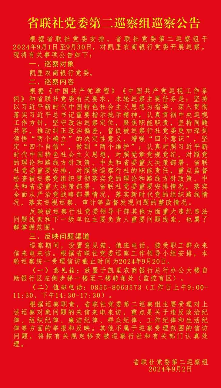 省联社党委第二巡察组巡察公告