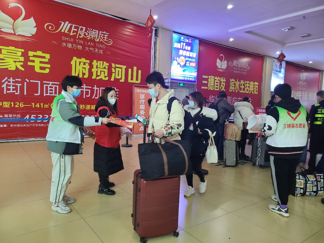 为弘扬新时代志愿服务精神,深入做好农民工金融服务,积极推动“我为群众办实事”实践活动走深走实,贵州三穗农商银行团委联合共青团三穗县委、县机关工委、县妇联、县消防救援大队在三穗县高铁站开展“青春志愿行•温暖回家路”暖冬行动,为三穗县2022年春运“暖冬”行动拉开序幕。