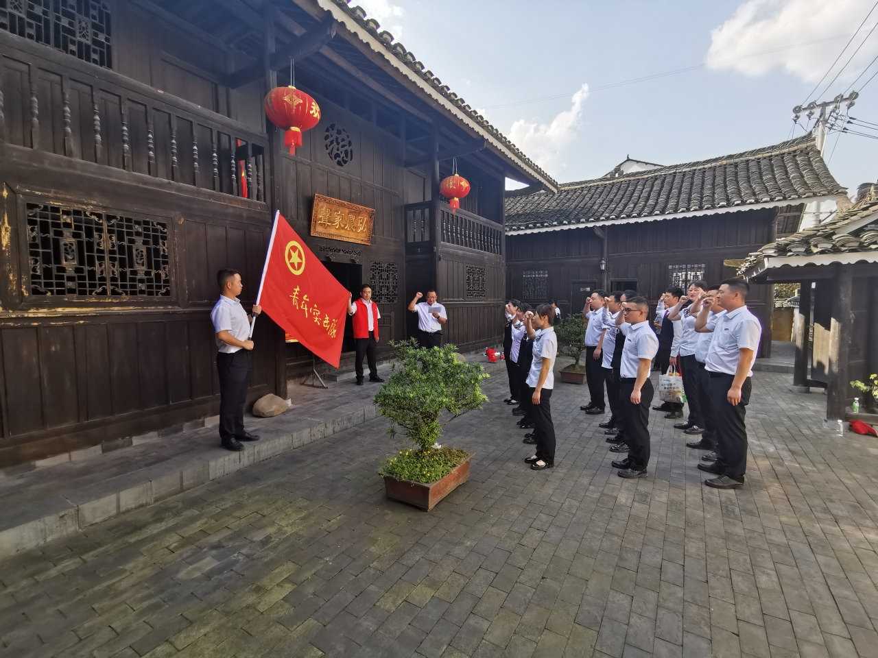 缅怀先烈,参观杨至成将军故居。“1955年,杨至成被授予开国上将,毛主席称他是‘红军大管家’......”在讲解员声情并茂的叙述下,拉开了主题团日第二个活动的序幕——参观开国上将杨至成故居。青年突击队员们从一幅幅真实的图片、一段段感人的故事、一件件珍贵的物品中追忆那些激情燃烧的岁月,缅怀革命先烈为了人民利益不怕牺牲的大无畏精神。并在杨至成将军故居前,庄严宣誓,重温入团誓词。