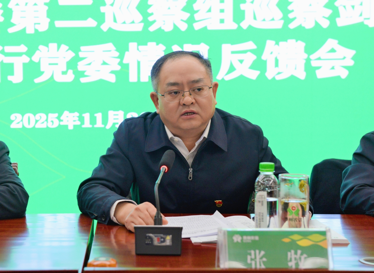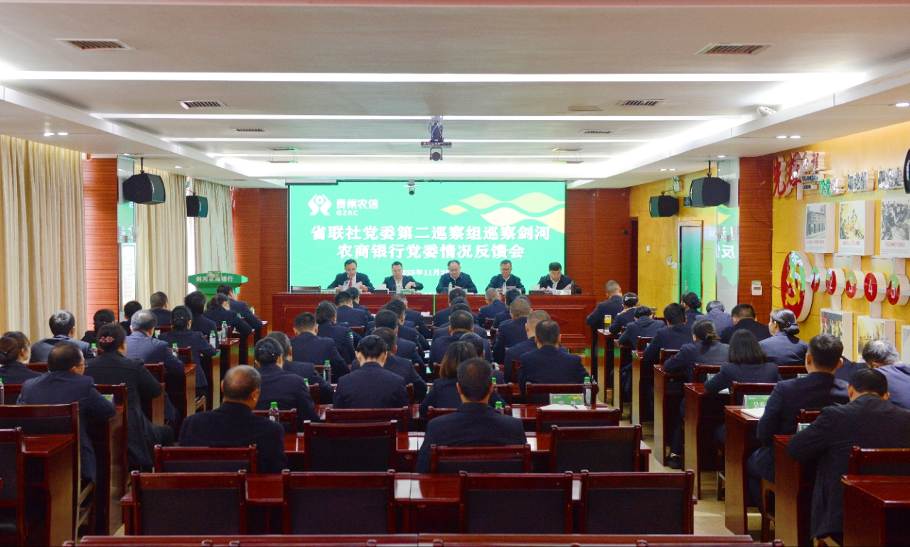 根据省联社党委巡察工作统一部署,2025年11月20日上午,省联社党委第二巡察组向剑河农商银行党委反馈巡察情况。第二巡察组副组长李远富传达省联社党委书记、理事长、巡察工作领导小组组长杨松在省联社党委会上听取巡察工作汇报时的讲话精神。省联社党委巡察工作领导小组成员、党委组织部部长张牧出席反馈会并对抓好巡察整改工作提要求。第二巡察组组长陈耕向剑河农商银行党委领导班子反馈巡察意见。黔东南审计中心党委书记龙昌明就履行巡察整改监督责任作表态,并对做好巡察整改工作提要求,剑河农商银行党委书记袁朝阳主持反馈会议并作表态发言。会前,第二巡察组向袁朝阳单独反馈了巡察情况,提出巡察整改意见。