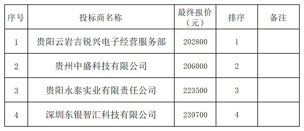 贵州黔西农村商业银行股份有限公司网点设备采购项目(项目编号QXNS20250903)项目,根据前期征集情况,共邀请三家供应商参加,共收到三家供应商响应文件,本着公开、公正、公平、诚实信用原则,现就本次采购评审结果公示如下: