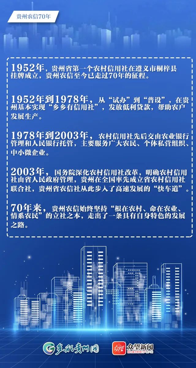 农业强则国家强,农村兴则国家兴。农村金融是农村经济的核心。70年来,贵州农信坚持因农而生、以农为本,立足市场定位,以改革促发展,主动担当作为,有效发挥了金融支农主力军作用,为社会主义新农村建设和贵州省经济社会发展作出了积极贡献。