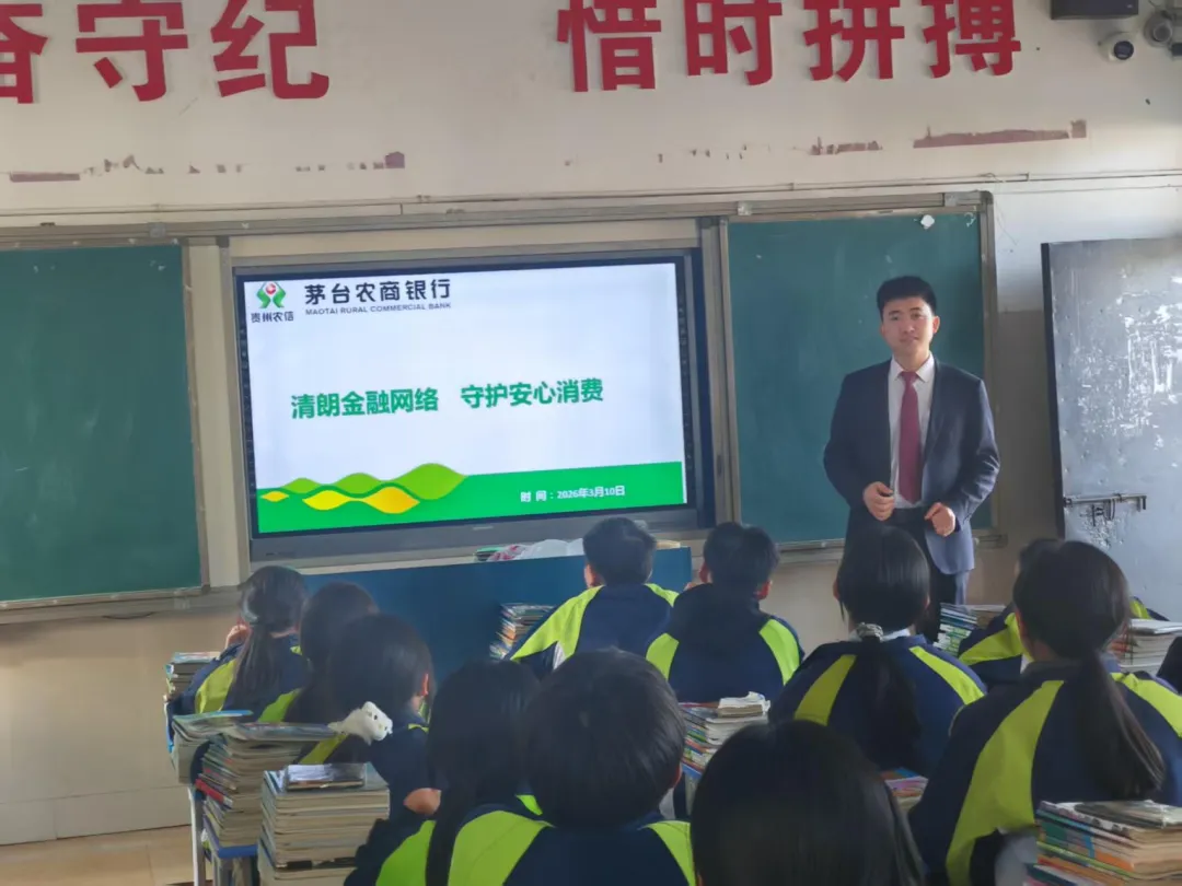 为切实提升青少年金融安全意识,筑牢校园反诈防线,保障消费者权益,近日,茅台农商银行大坝支行走进仁怀市大坝中学,开展“清朗金融网络守护安心消费”主题宣传活动。